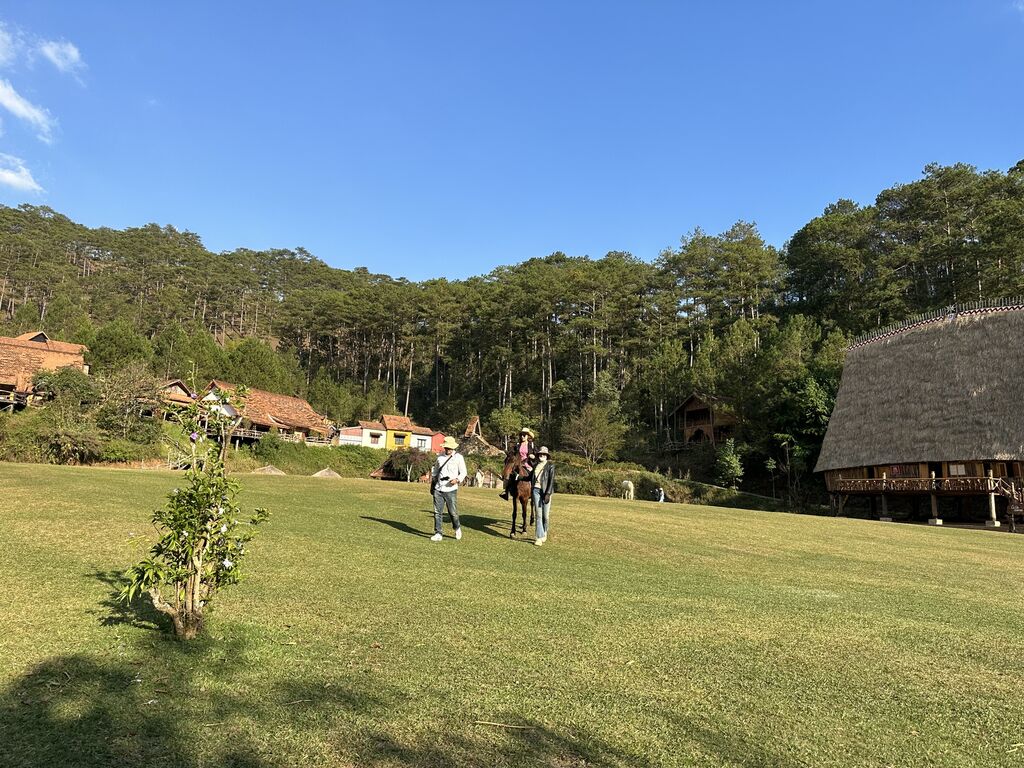 | La grande prairie dans le village de Cu Lân, où les touristes peuvent faire du camping ou du cheval. |