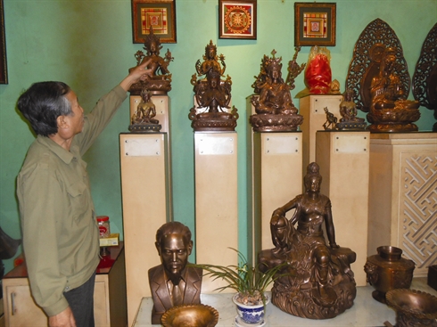 La maison de Nguyên Van Ung, située au 178, rue Trân Vu à Hanoi, est un véritable petit musée avec de nombreux objets en cuivre. C’est aussi un lieu de rencontre, où passent ses enfants, ses amis, mais aussi celles et ceux intéressés par l’art de la fonderie. Ses clients sont tantôt des habitués, tantôt des étrangers.