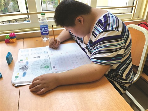 | Le jeune Duong Hai s’entraîne à l’écriture. |