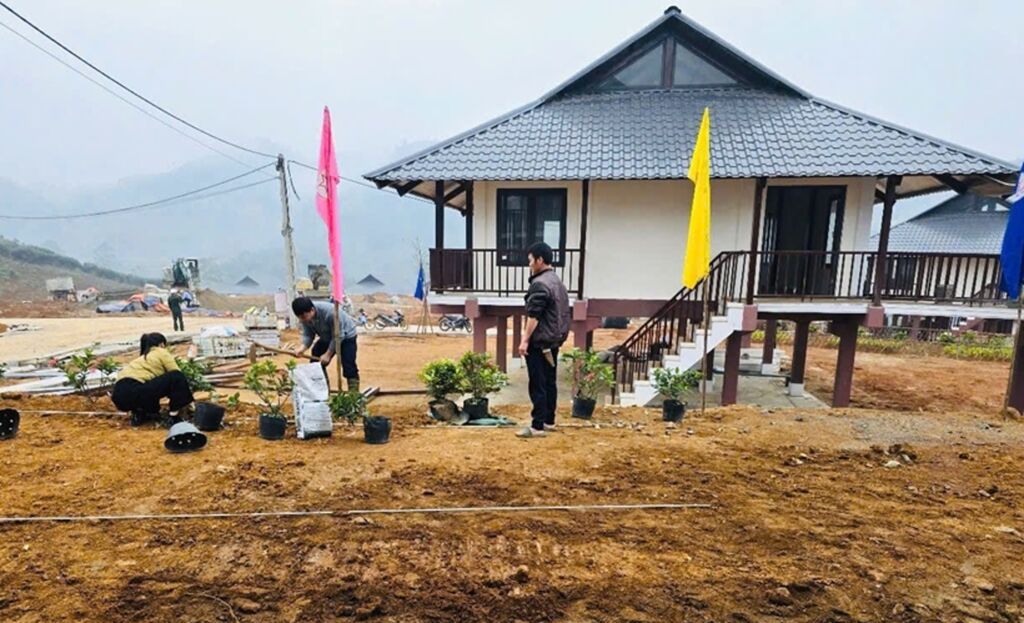 Quarante maisons de deux étages ont été construites, suivant le modèle traditionnel des maisons sur pilotis des Tày, avec des installations annexes telles qu’une cuisine et des toilettes. De plus, un établissement scolaire (deux salles de maternelle, deux salles primaires), une salle communautaire, ainsi que des infrastructures de transport, d’électricité et d’eau ont également été aménagés, assurant aux habitants une vie stable et durable.