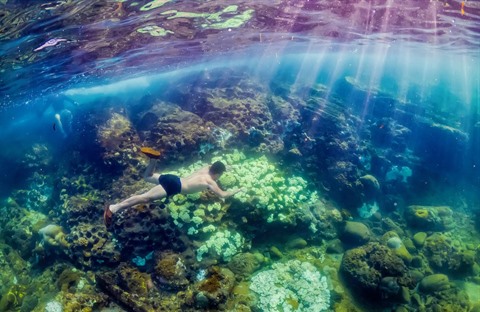 | Un touriste étranger prend des photos lors de sa session de plongée. |