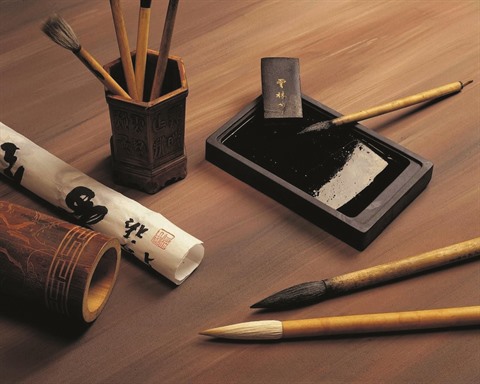 | Pinceau et écritoire forment le symbole de la littérature, de la culture et des concours mandarinaux. |