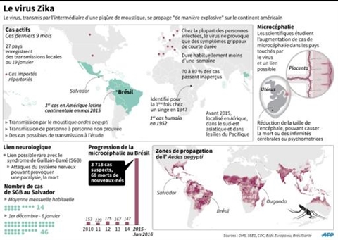| Fiche sur le virus Zika et carte mondiale de sa propagation ces 9 derniers mois |