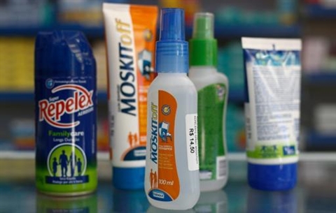 | Des produits anti-moustiques en vente dans une pharmacie à Sao Paulo, au Brésil. |