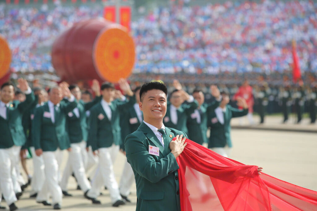 | Nguyên Duy Anh défile à la cérémonie solennelle sur la place historique Ba Dinh à Hanoï pour célébrer les 80 ans de la Révolution d’Août et de la Fête nationale, le 2 septembre 2025. |