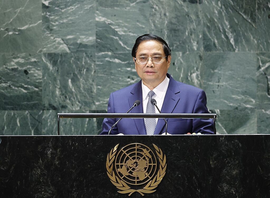 | Le Premier ministre Pham Minh Chinh s'exprime au siège de l'ONU à New York, le 22 septembre. |