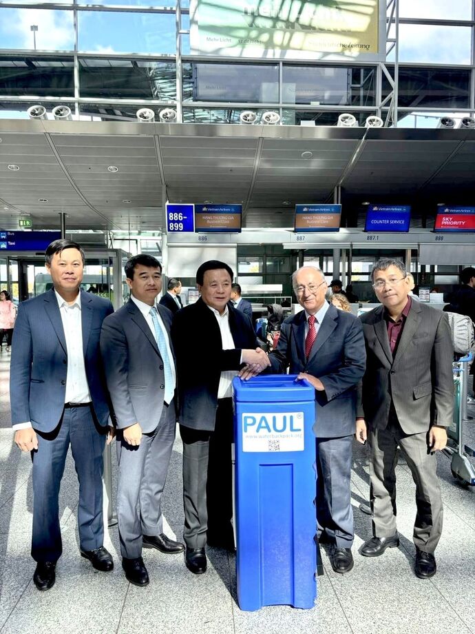 Plus tôt, le 12 septembre, le Dr. Kambiz Ghawami a offert un filtre à eau aux victimes vietnamiennes du typhon par l'intermédiaire du membre du Bureau politique, directeur de l’Académie nationale de politique Hô Chi Minh, également président du Conseil théorique central, Nguyên Xuân Thang, qui dirigeait la délégation en Allemagne.