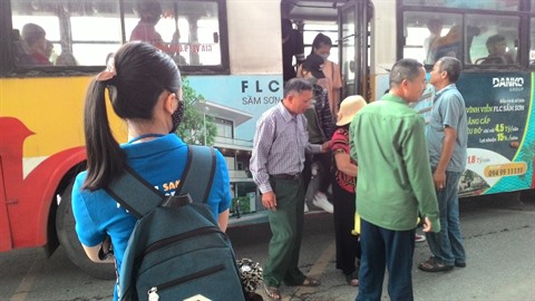 | Les xe ôm s’approchent du bus lorsqu’il s’arrête. |