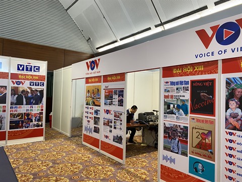 | Stand de la radio nationale La Voix du Vietnam au Centre de presse du XIIIe Congrès national du Parti. |