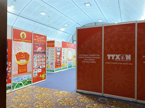 | Stand de l'Agence Vietnamienne d'Information au Centre de presse au service du XIIIe Congrès national du Parti. |