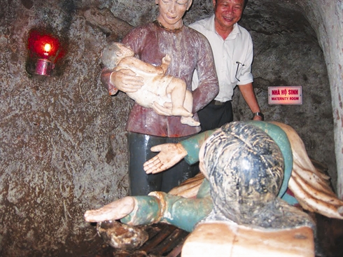 | Reconstitution de la vie des habitants dans le tunnel de Vinh Môc. |