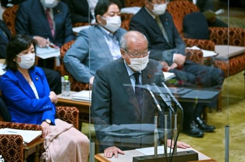 | Le ministre des Finances, Shunichi Suzuki, interrogé par le Parlement japonais, le 13 juin à Tokyo. |