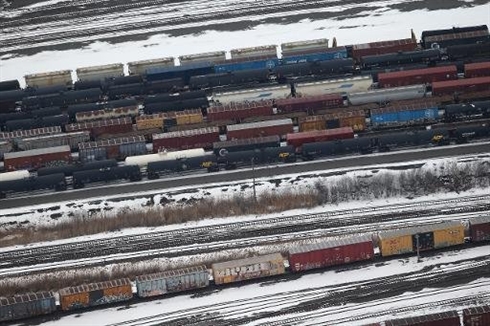 | Des convois de fret ferroviaire à Port Newark, dans le New Jersey. |