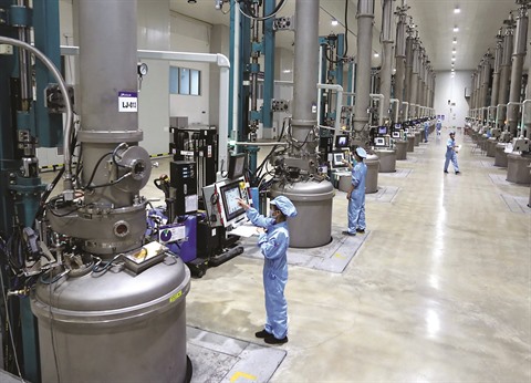 | Fabrication du matériel pour panneaux photovoltaïques dans la Sarl JA Solar Vietnam, implantée dans la ZI de Quang Châu, à Bac Giang (Nord). |
