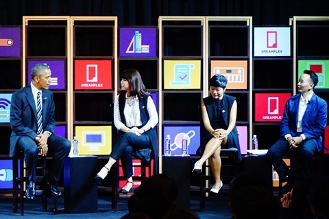 | Rencontre entre l’ancien président américain Barack Obama et des start-uppers exemplaires vietnamiens à Hô Chi Minh-Ville. |