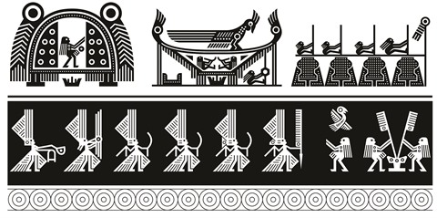 | Motifs de décoration sur les tympans des tambours de bronze de Dông Son. |