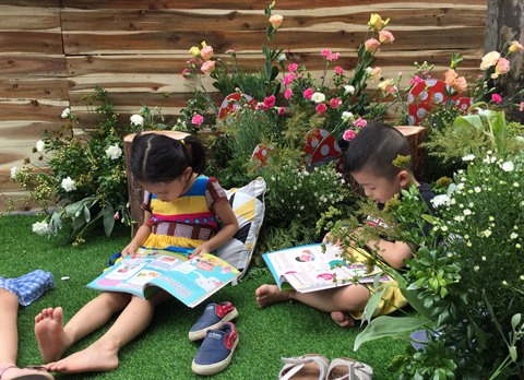 | Un espace de lecture aménagé dans le Palais des enfants de Hanoï à l'occasion du lancement du concours. |
