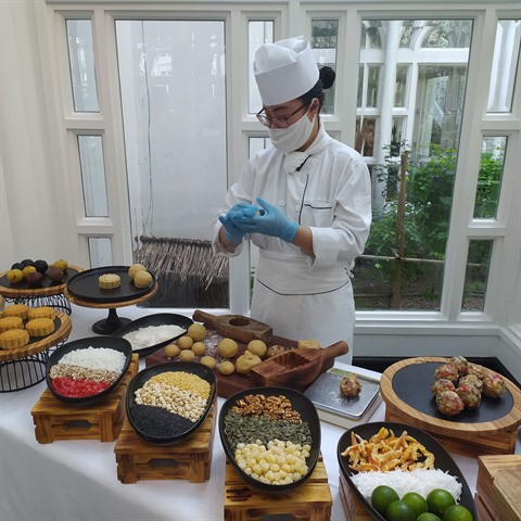 | Cérémonie de présentation des gâteaux de lune pour la saison de mi-automne 2020 de l’hôtel Métropole Hanoi, le 21 août. |