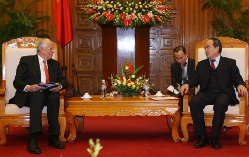 | Le vice-Premier ministre Nguyên Thiên Nhân (droite) a reçu le 12 avril à Hanoi le professeur Heinz Boyer de l'université Krems. |