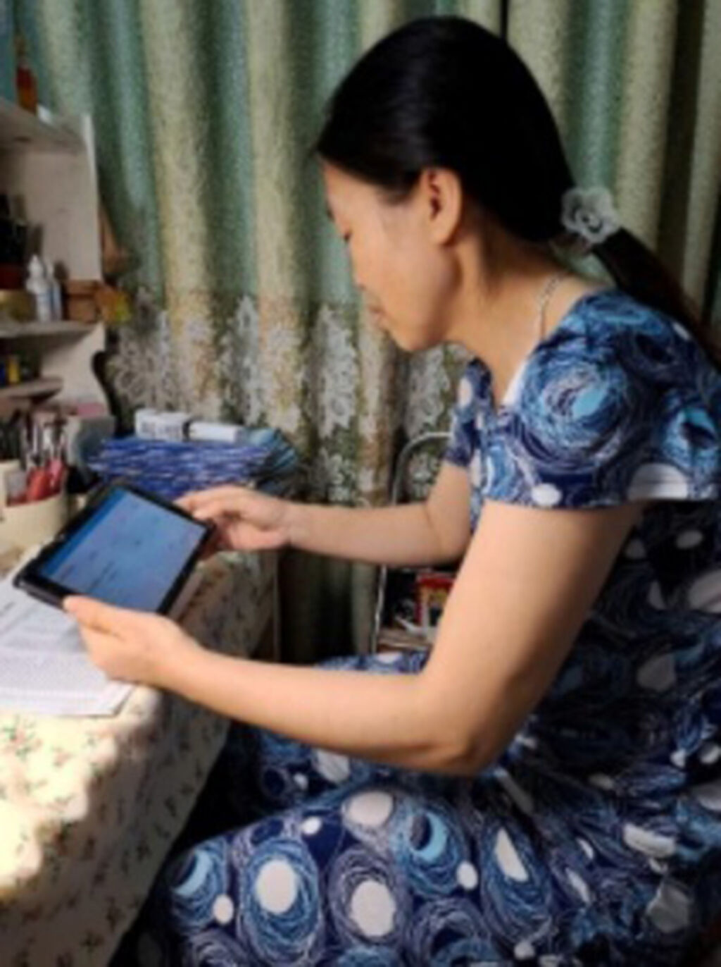 Au milieu du rire de trois enfants, Madame Duong continue à manipuler sa tablette tactile. Avec des gestes rapides et des yeux concentrés, elle fait le questionnaire à choix multiple et complète les factures sans hésitation. À 51 ans, cette mère est employée commerciale chez le distributeur Phuc Hung depuis 16 ans.