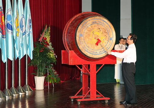| Le Premier ministre Nguyên Tân Dung lors de la cérémonie de rentrée scolaire 2011-2012 de l'Université nationale de Hô Chi Minh-Ville, le 21 octobre. |