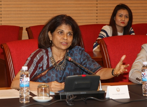 | La coordinatrice résidente de l'ONU et co-présidente du Groupe de coordination informelle pour l'égalité des sexes Pratibha Mehta, à la réunion du Groupe de discussion informelle sur l'égalité des sexe. |