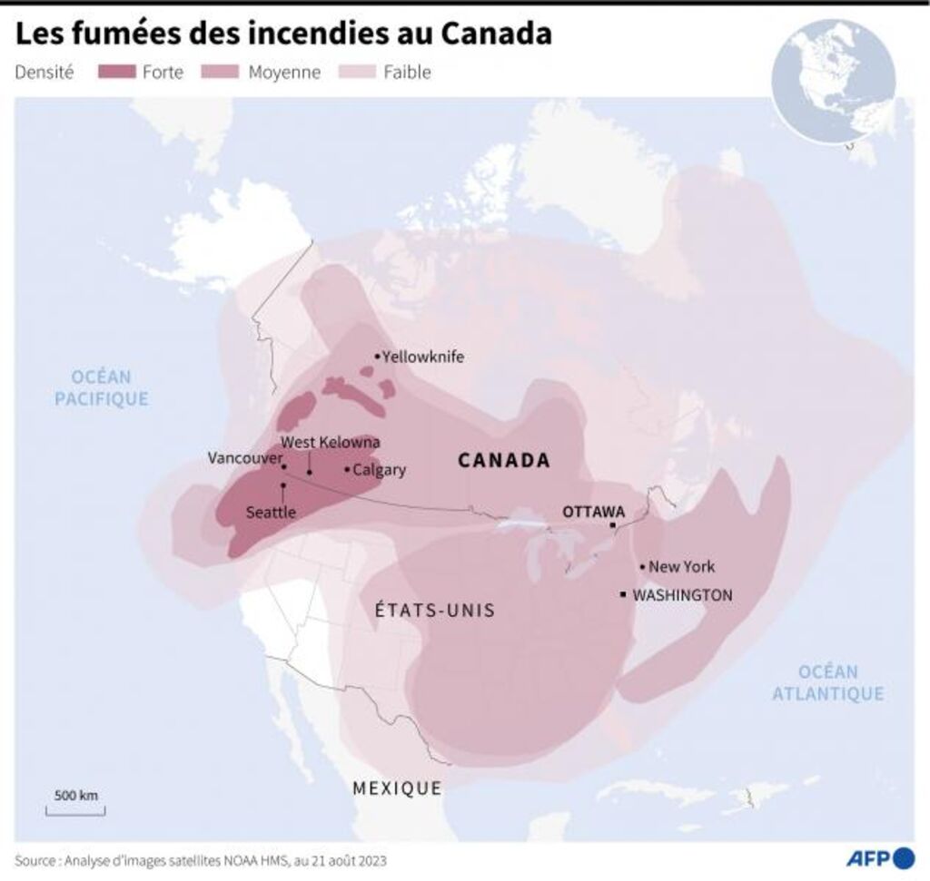 Cette ville de 150.000 habitants, située à 400 km de Vancouver, où des milliers de personnes ont dû évacuer, est noyée depuis plusieurs jours dans une fumée épaisse, odorante et visible à plus d'une centaine de kilomètres de la ville.