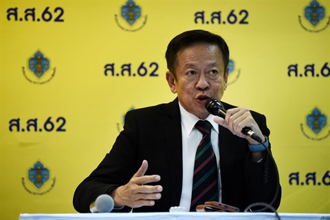 | Le secrétaire général de la Commission électorale thaïlandaise (CE), Jarungvith Phumma, publie le résultat des élections à Bangkok, le 25 mars. |