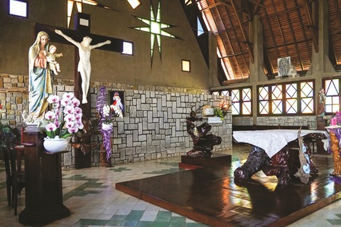 Au milieu du sanctuaire, un autel a été disposé en dessous de la croix sur le mur de pierre avec trois cornes de buffle. Pour les populations, le buffle est à la fois un ami et un animal sacrificiel lorsque la récolte est abondante.
