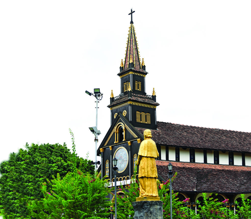 Elle comprend également un sanctuaire, une salle de réception, une salle d’exposition des mœurs et coutumes des ethnies, une maison sur pilotis et des ateliers de brocatelles, de broderie et de menuiserie. Elle attire de nombreux visiteurs par sa beauté harmonieuse, sa préservation de l’identité culturelle nationale, ses dignitaires et ses fidèles du diocèse de Kon Tum.