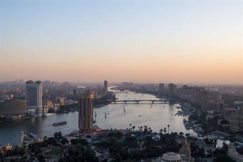| Le Nil et la capitale égyptienne, le Caire, vus depuis la tour du Caire, le 24 novembre 2019. |