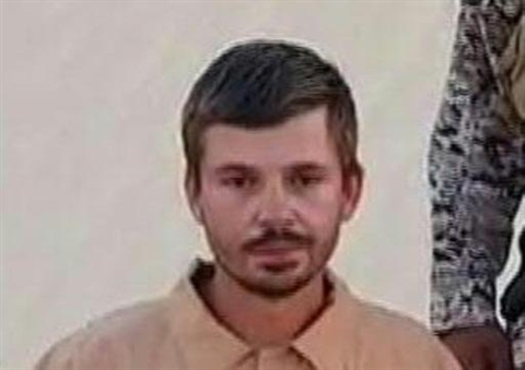 | Capture d'écran d'une vidéo diffusée par un groupe égyptien affilié au groupe État islamique, le 5 août, montrant l'otage croate Tomislav Salopek. |