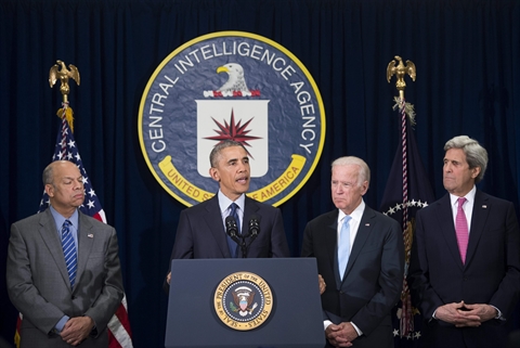 | Le président des États-Unis, Barack Obama, le 13 avril au siège de la CIA à Langley en Virginie. |