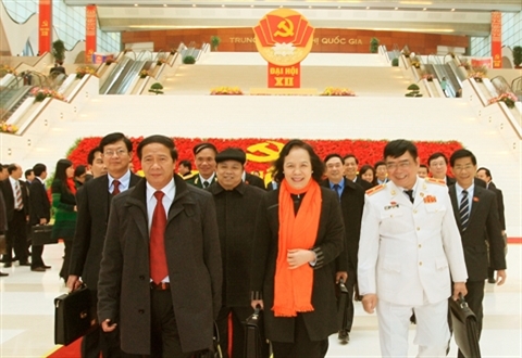 | Des délégués du XIIe Congrès national du PCV, le 25 janvier à Hanoi. |
