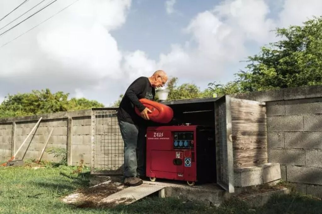 | Un habitant remplit de carburant son générateur pendant une panne d'électricité, au Moule, en Guadeloupe le 26 octobre. |
