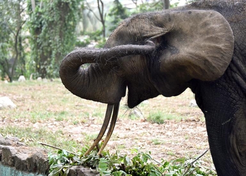 | Un éléphant dans le zoo d'Abidjan, le 10 mars. |