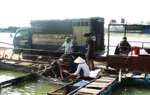 | Récolte d’Hemibagrus guttatus dans un élevage sur la rivière Lô, province de Phu Tho (Nord). |