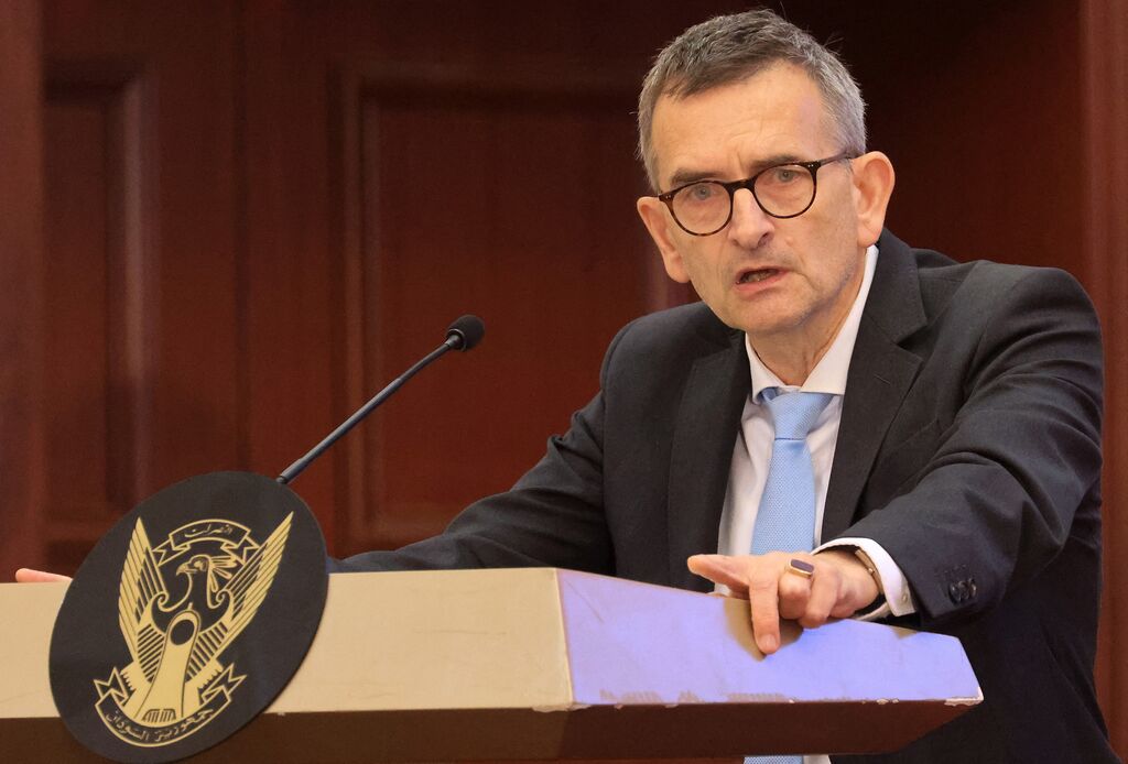| L'émissaire de l'ONU au Soudan, l'Allemand Volker Perthes, lors d'une conférence de presse, en décembre 2022. |