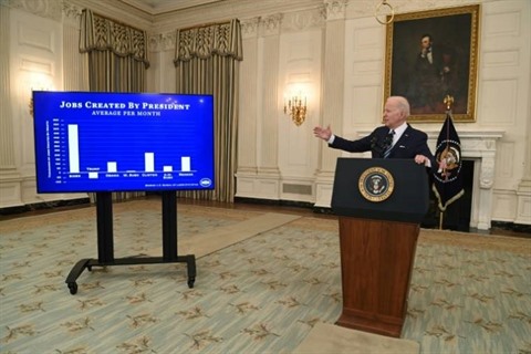 Les créations d'emplois de janvier viennent s'ajouter à celles de décembre, qui ont été bien plus élevées qu’initialement annoncé, avec 510.000 emplois créés au lieu de 199.000. La prise en compte des nouveaux chiffres de la population après le recensement de 2020 a conduit à une révision pour l'ensemble de l'année 2021 : 217.000 emplois de plus qu'annoncé ont été créés.
