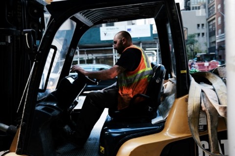 | Un employé en train de travailler sur son engin, à New York, le 1er octobre 2021. |