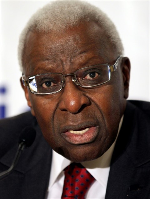 | Lamine Diack alors président de l'IAAF en conférence de presse à Monaco le 12 novembre 2011. |