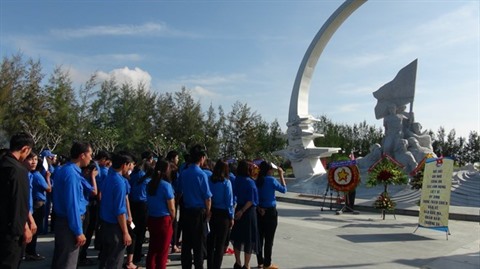 | Des autorités et des jeunes de Khanh Hòa rendent hommage aux 64 soldats qui ont sacrifié leur vie dans la bataille de Gac Ma dans le district de Cam Lâm, le 14 mars. |