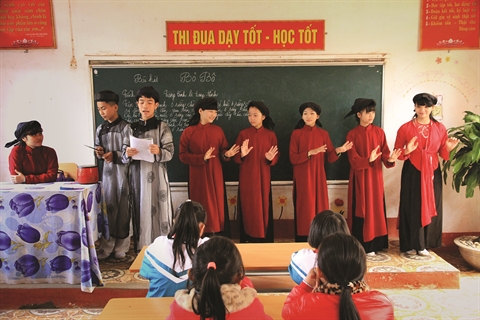 Ces derniers temps, plusieurs patrimoines culturels immatériels reconnus par l’UNESCO, comme le hat xoan (chant printanier dans la province de Phu Tho), le quan ho de Bac Ninh (chant alterné) au Nord, les vi et giam de Nghê An, le ca trù (chant des courtisanes de Huê, Centre), ont chacun déjà fait l’objet d’une présentation exhaustive à l’école.