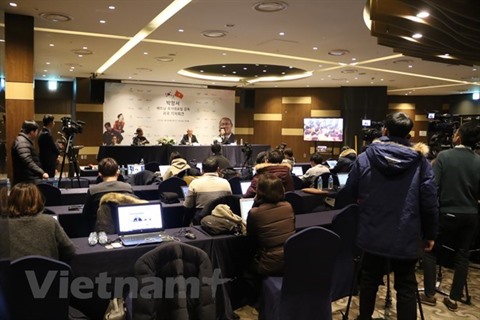 | Vue de la conférence de presse, le 8 février à Incheon. |