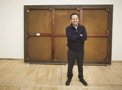 | L’artiste brésilien Vik Muniz pose devant son travail lors de l’exposition «Vik Muniz : Verso» au musée Mauritshuis à La Haye, aux Pays-Bas. |