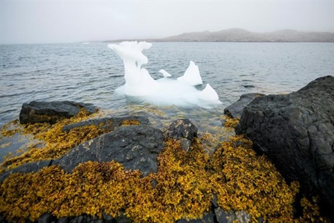 | Un grand morceau de glace dans la mer au large du Groenland, le 14 août. |