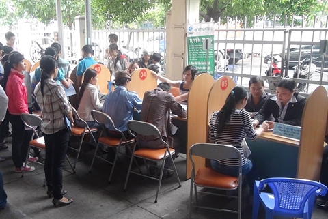 | Des travailleurs vietnamiens préparent les formalités pour partir en République de Corée. |