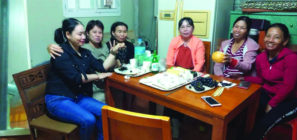 | Des paysannes de Hoà Vang se rencontrent après des heures de travail en République de Corée. |