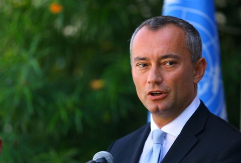 | L'envoyé spécial de l'ONU au Proche-Orient, Nickolay Mladenov, le 25 septembre à Gaza. |