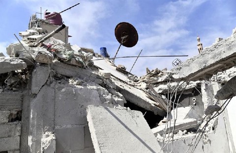 | Des maisons endommagées dans un quartier résidentiel de la campagne de Damas, en Syrie, le 27 avril. |